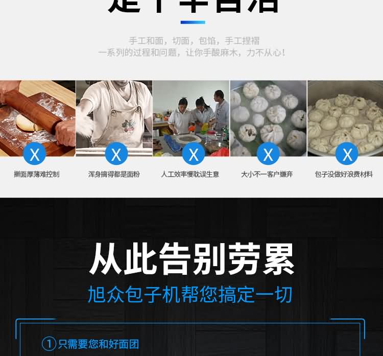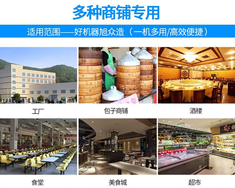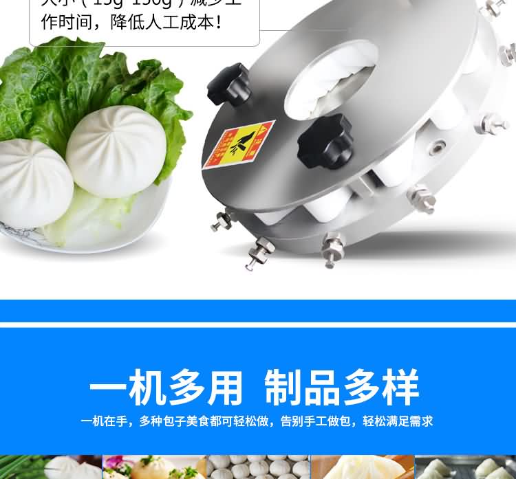 設(shè)備工作效率相當(dāng)于8-12人工人同時(shí)手工制作,是現(xiàn)在招工難,高薪水,人員不穩(wěn)定的時(shí)期的理想、高效的設(shè)備,適用于賓館、飯店、學(xué)校、機(jī)關(guān)、食堂、饅頭或包子加工廠、早餐工程店及速凍食品廠。