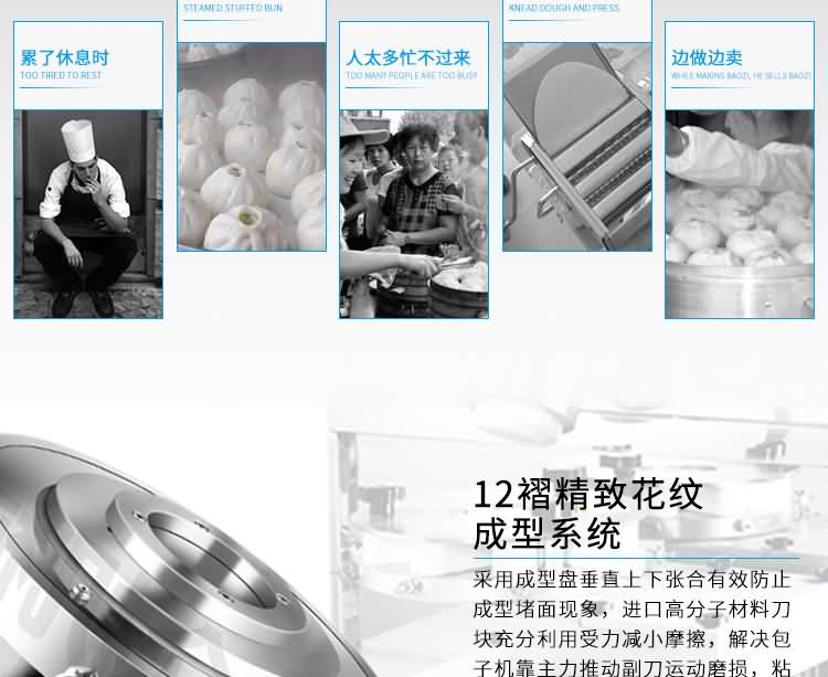 設(shè)備工作效率相當(dāng)于8-12人工人同時手工制作,是現(xiàn)在招工難,高薪水,人員不穩(wěn)定的時期的理想、高效的設(shè)備,適用于賓館、飯店、學(xué)校、機(jī)關(guān)、食堂、饅頭或包子加工廠、早餐工程店及速凍食品廠。本機(jī)提供免費上門培訓(xùn)指導(dǎo)、安裝、調(diào)試、面點工藝傳授。