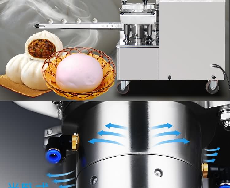 ◆出餡系統(tǒng)結(jié)構(gòu)密閉性好,注餡均勻流暢,半臥式傾斜裝配的餡管完善了立式出料系統(tǒng)餡料容易成團(tuán)下掉而造成包子餡料不均勻或出現(xiàn)空包子的現(xiàn)象。