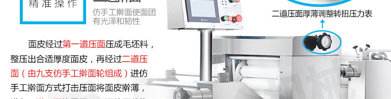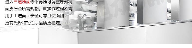 ◆ 產(chǎn)品的面帶經(jīng)過(guò)多道壓面工藝,一步步提高筋度和密度,從而提高咀嚼口感;