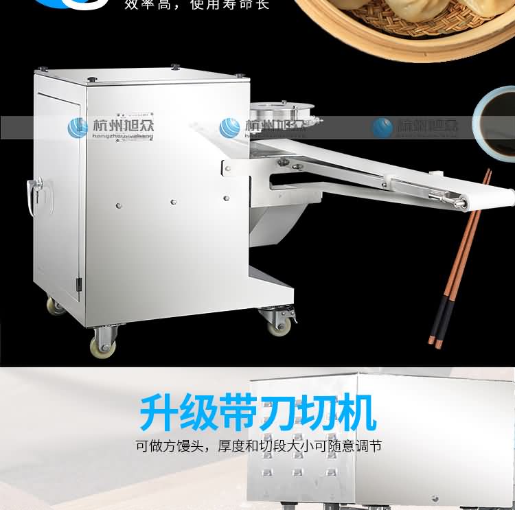 ◆采用高品質微電腦控制,人性化的控制,自動化的程度高,定量準確,制品大小統(tǒng)一,饅頭面帶厚度、成型、切段大小隨意可調(diào)。
